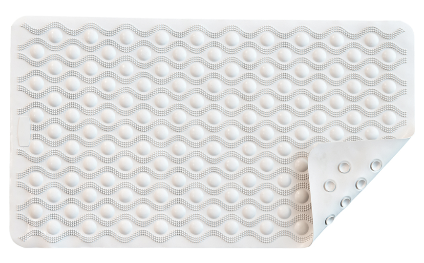 Ideal to promote bathroom safety, this bath has a suction grip that allows it to attach securely to a tub's surface and helps prevent slipping. The suction cups on the bottom of the mat create a strong seal with the tub, preventing the mat from moving around. The mat also has a textured surface that provides additional grip and helps to prevent slipping.
