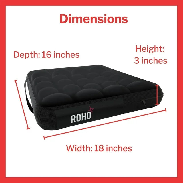 The ROHO Mosaic Wheelchair Cushion offers comfort and basic skin protection for wheelchair users. Its inflatable air cells evenly distribute pressure, preventing discomfort and "bottoming out." Ideal for those needing mild skin protection, support, and long sitting times. Made of durable PVC, it's a reliable choice for everyday use.
